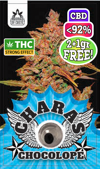 Μέσα στην ποικιλία Charas , με το χαρακτηριστικό γνώρισμα της πλούσιας αίσθησης σοκολάτας , δεν θα μπορούσε να λείπει και αυτή η ποικιλία . Η Chocolope της Aromas of Crete , ήρθε να ταράξει τα νερά και τις αισθήσεις των παθιασμένων με το άρωμα αυτής της σειράς προσφέροντας το μέγιστο σε γεύσεις με βάση την σοκολάτα , το κακάο ,καβουρδισμένους ξηρούς καρπούς και άρωμα καφέ που θα σας συναρπάσει .Έχει να σας προσφέρει μοναδικές στιγμές χαλάρωσης αφαιρώντας πίεση και στρες αφήνοντάς σας σε ένα όμορφο ταξίδι αισθήσεων .