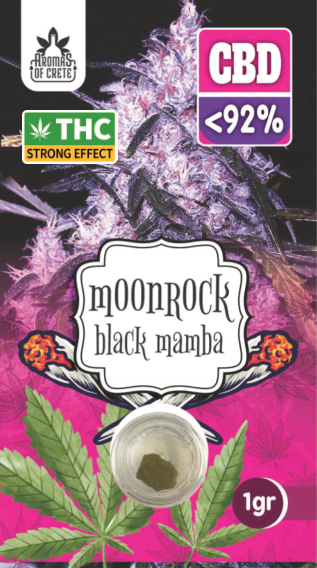 Ξεχωριστή ποικιλία με την ιδιαίτερη επεξεργασία η MoonRock Black Mamba CBD από την Aromas of Crete τώρα στην μοναδική συλλογή της Smoke signals.