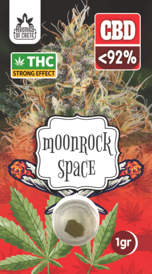 Μοναδικό προϊόν της Aromas of Crete ,η επιλογή του Moonrock Space CBD ,τώρα στην συλλογή της Smoke signals. Μια ποιοτική πρόταση για αυτούς που έχουν απαίτηση για δυναμικό αποτέλεσμα. Γρήγορη δράση με έντονα τα πρώτα δείγματα χαλάρωσης στα μάτια και στον αυχένα.Ιδανικό για να να χαλαρώσετε από μια δύσκολη μέρα μετά από έντονο στρές 'Οπως και τα υπόλοιπα προϊόντα της σειράς Moonrock φτιάχνεται παίρνοντας ένα ψήγμα ανθού κάνναβης και βουτώντας το μέσα ή ψεκάζοντάς το με συμπύκνωμα ή χασισέλαιο. Το επικαλυμμένο ψήγμα στη συνέχεια τυλίγεται σε kief ή αφήνεται και ως άνθος χώρια του επιπρόσθετου kief ώστε να διατηρήσει ατόφια τα χαρακτηριστικά του .