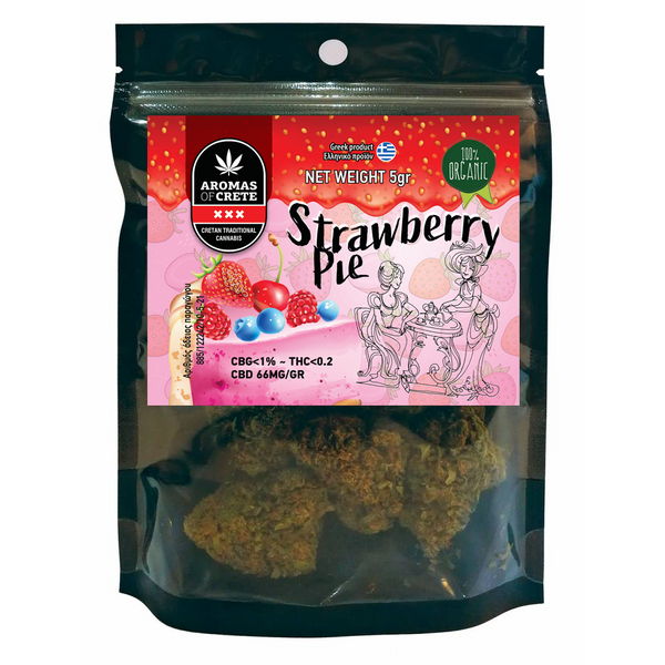 Unique proposals through absolutely quality and organic crops such as that of Strawberry Pie by Aromas of Crete CBD give you a lasting tax and mood of joy, banishing all the accumulated fatigue, stress and anxiety of the day, aiming for absolute relaxation, here with very rich notes of fruit standing out the taste and aroma of strawberry
